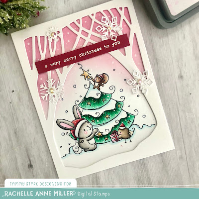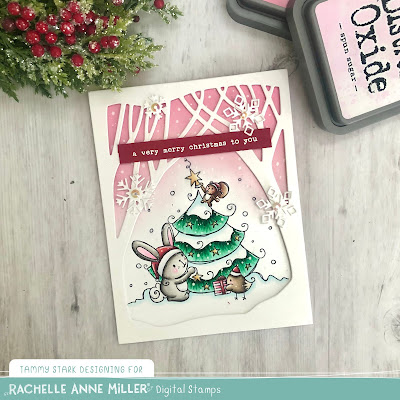 Hi there! I'm sharing a Christmas in July card for Rachelle Anne Miller Creative Studios today featuring the digital stamp, Animal Tree.