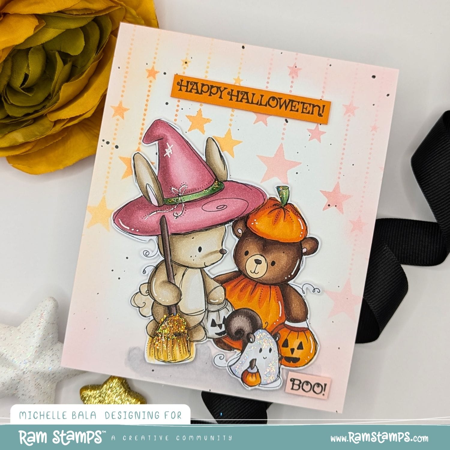 This listing is for a digital stamp (PNG Format) from Rachelle Anne Miller. Perfect for handmade cards, papercrafts, kid's colouring pages, and more, these whimsical hand-drawn digital stamps are the ideal cute and unique touch for your creative project! This stamp includes a bunny rabbit witch, a pumpkin a bear, a ghost squirrel, and a Halloween theme!
