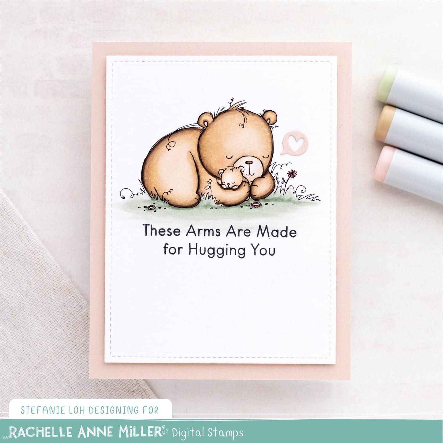 This listing is for a digital stamp (PNG Format) from Rachelle Anne Miller. Perfect for handmade cards, papercrafts, kid's colouring pages, and more, these whimsical hand-drawn digital stamps are the ideal cute and unique touch for your creative project! This stamp includes a mother cuddling her baby bear.