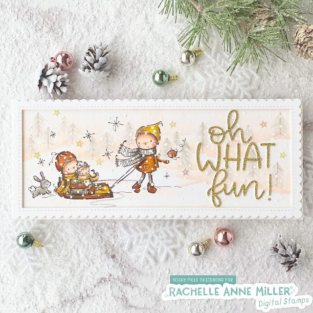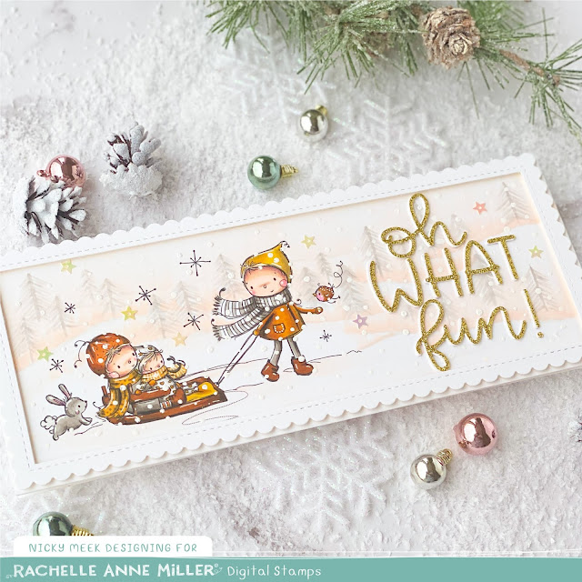 I have a new Christmas card to share with you all today. I've used the 'Christmas Sled' digital stamp by Rachelle Anne Miller Creative Studios - please read on for all the how-to details.