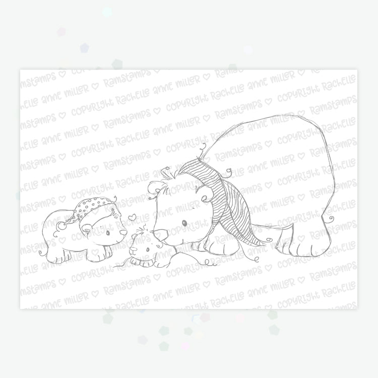 This listing is for a digital stamp (PNG Format) from Rachelle Anne Miller. Perfect for handmade cards, papercrafts, kid's colouring pages, and more, these whimsical hand-drawn digital stamps are the ideal cute and unique touch for your creative project. This stamp includes a mama polar bear taking care of her young!