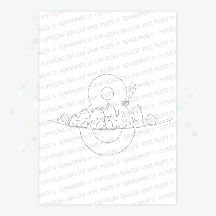 'Animal Number: Eight Birds' Digital Stamp