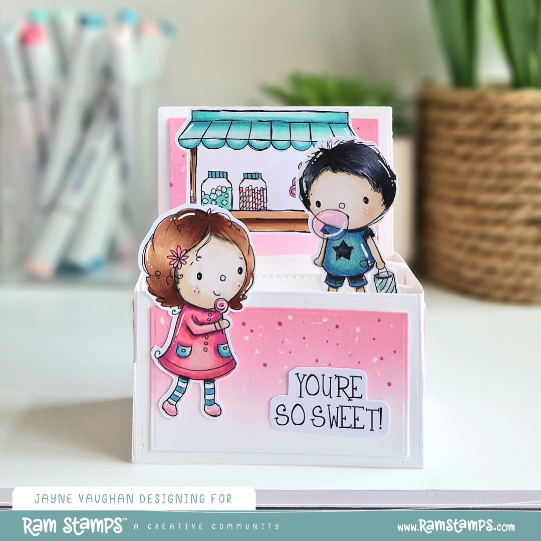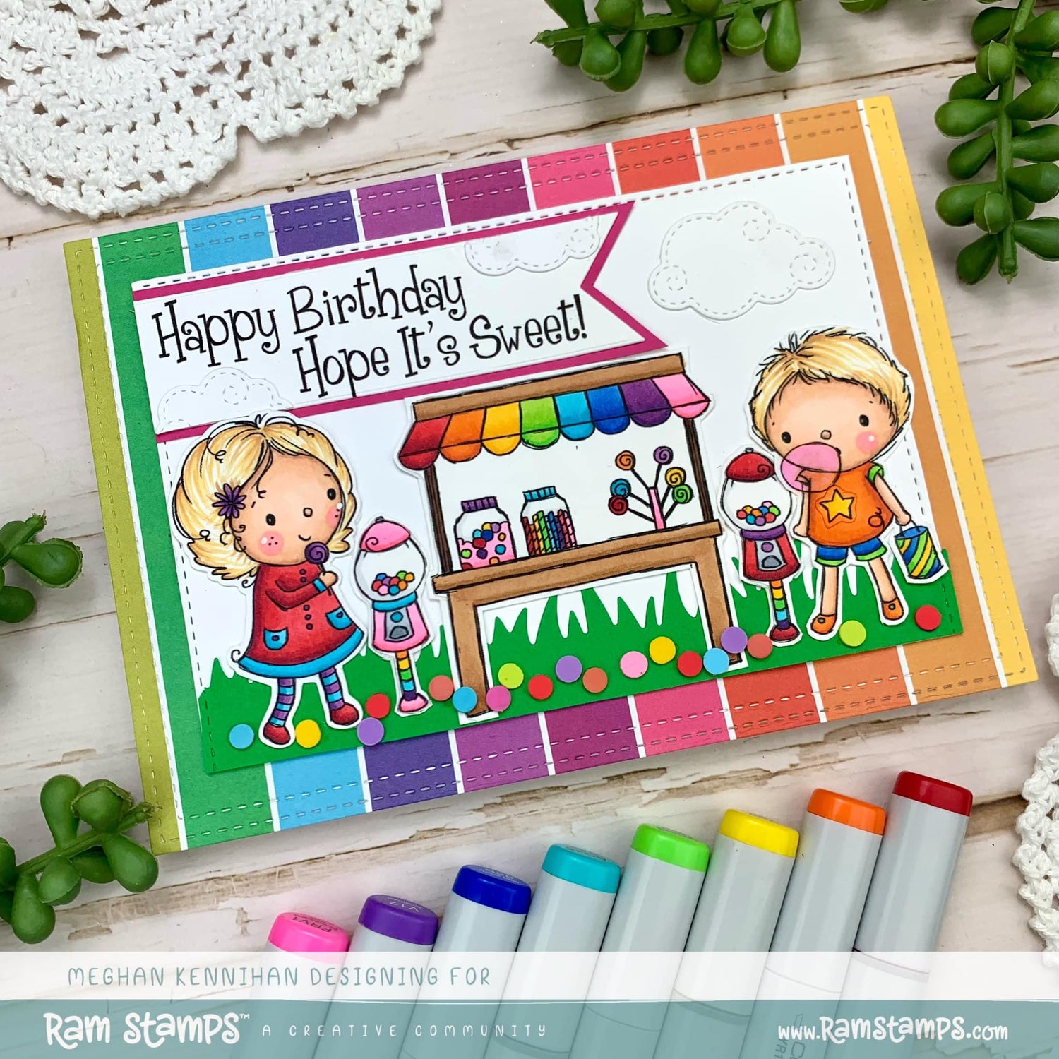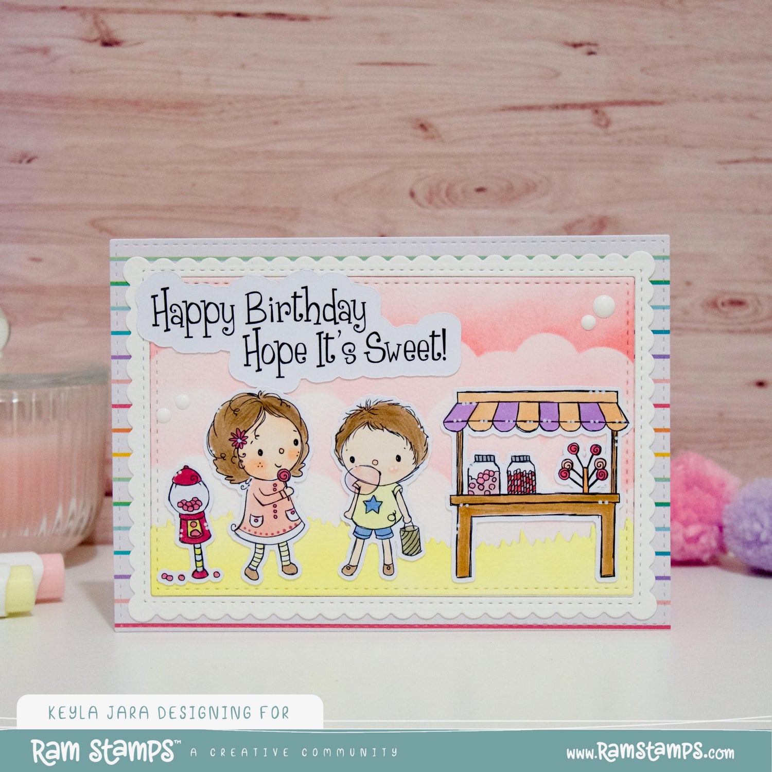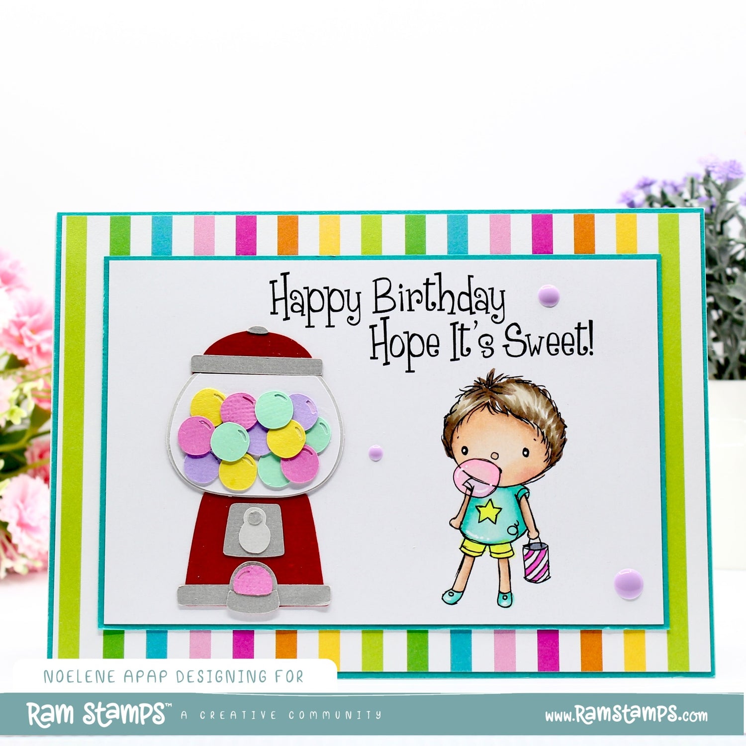 This listing is for 14 digital stamps (PNG Format) from Rachelle Anne Miller. Perfect for handmade cards, papercrafts, kid's colouring pages, and more, these whimsical hand-drawn digital stamps are the ideal cute and unique touch for your creative project. This set includes a little boy and girl character with a candy shop and a bubble gum stand!