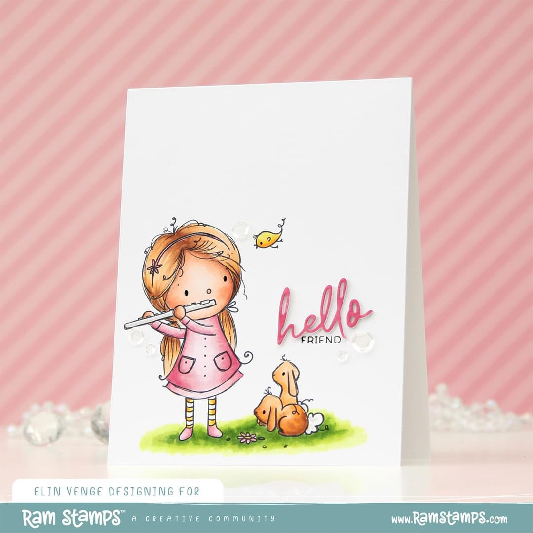 This listing is for a digital stamp (PNG Format) from Rachelle Anne Miller. Perfect for handmade cards, papercrafts, kid's colouring pages, and more, these whimsical hand-drawn digital stamps are the ideal cute and unique touch for your creative project. A little girl plays the flute to two small captivated bunnies!