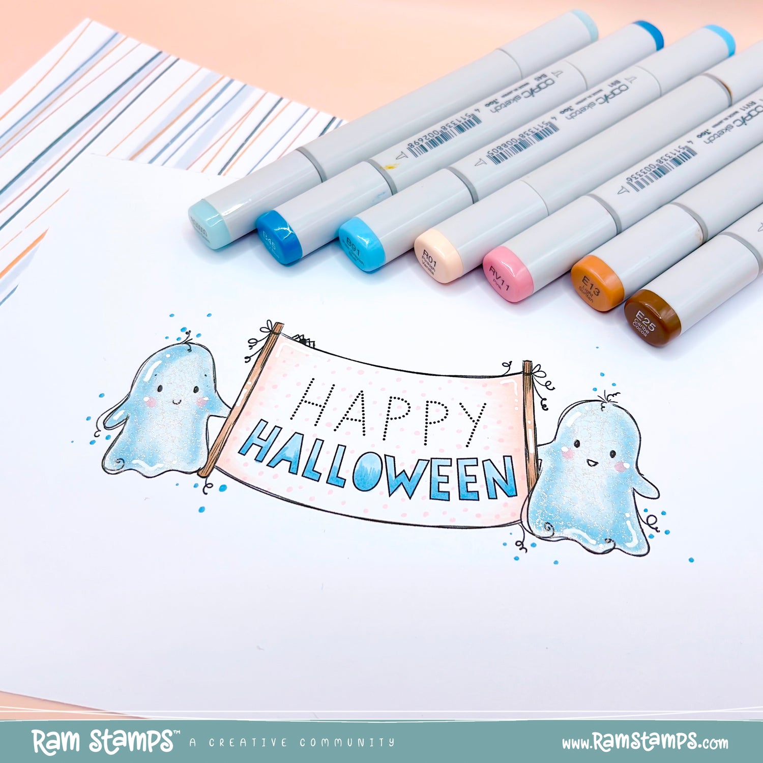 This listing is for a digital stamp (PNG Format) from Rachelle Anne Miller. Perfect for handmade cards, papercrafts, kid's colouring pages, and more, these whimsical hand-drawn digital stamps are the ideal cute and unique touch for your creative project! This stamp includes two cute ghosts holding up a 'Happy Halloween' banner.