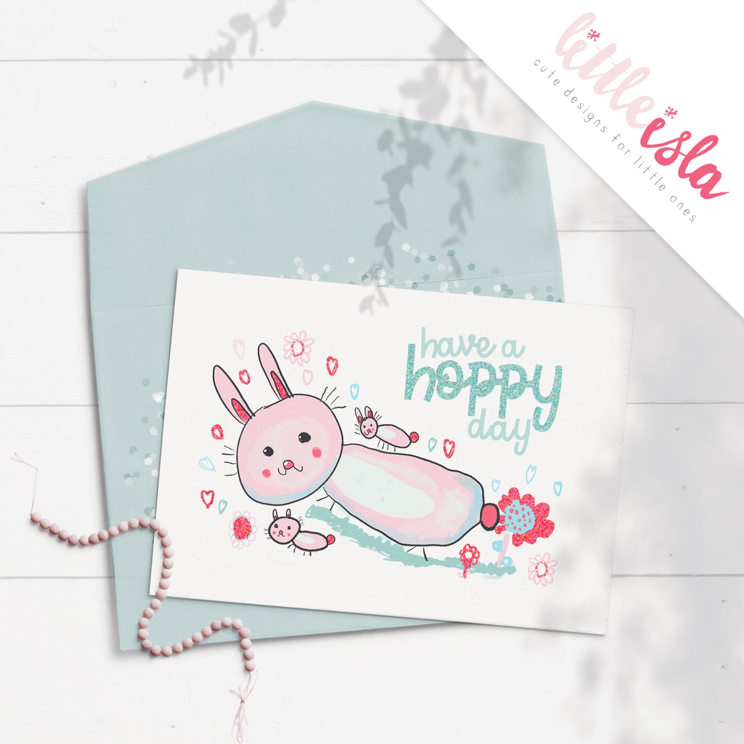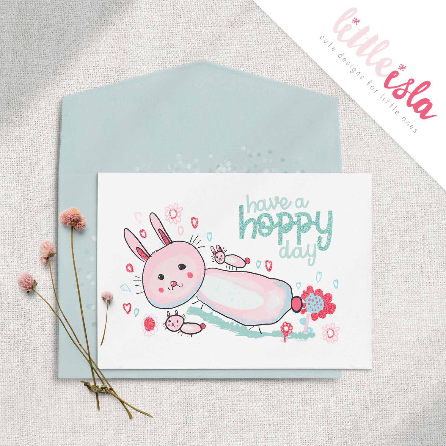 Have a Hoppy Day 5x7 Glittered Greeting Card by Little Isla