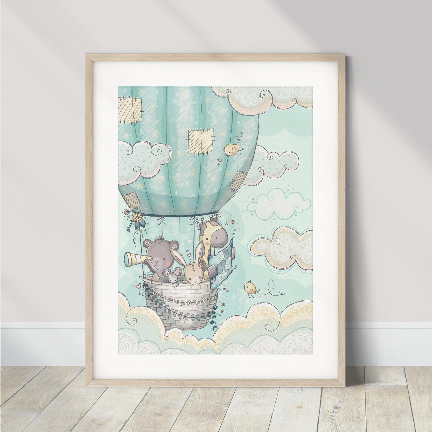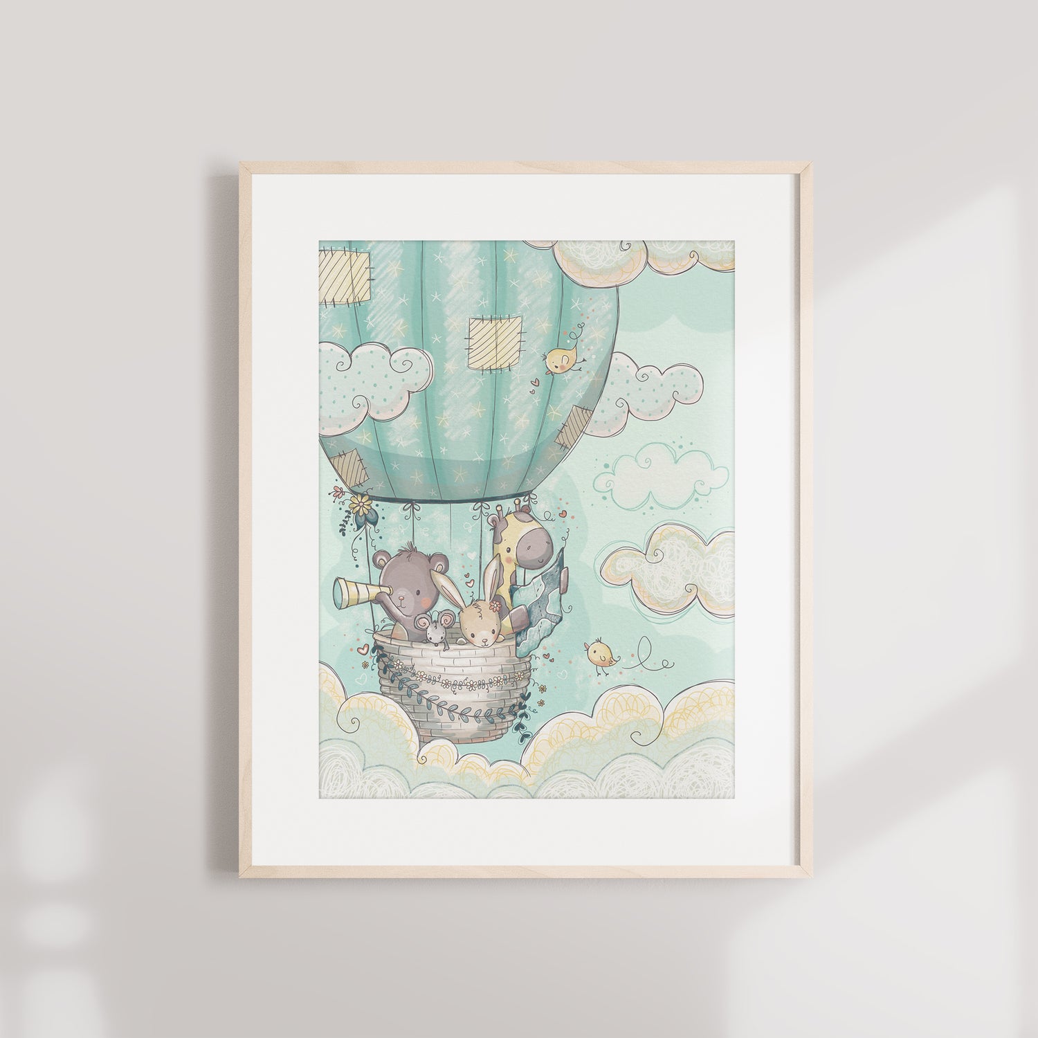 'Animal Hot Air Balloon' Children's Wall Art Print