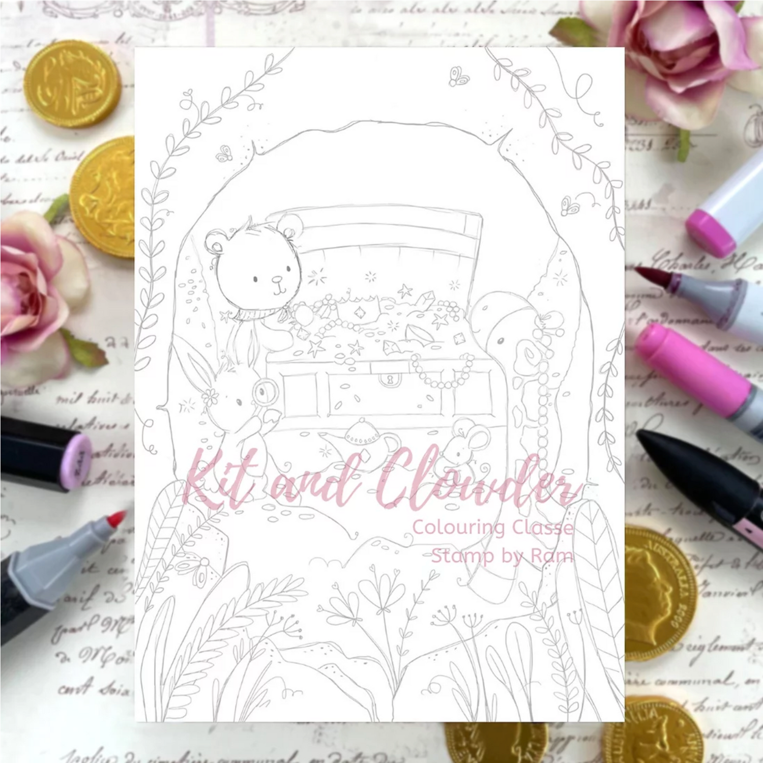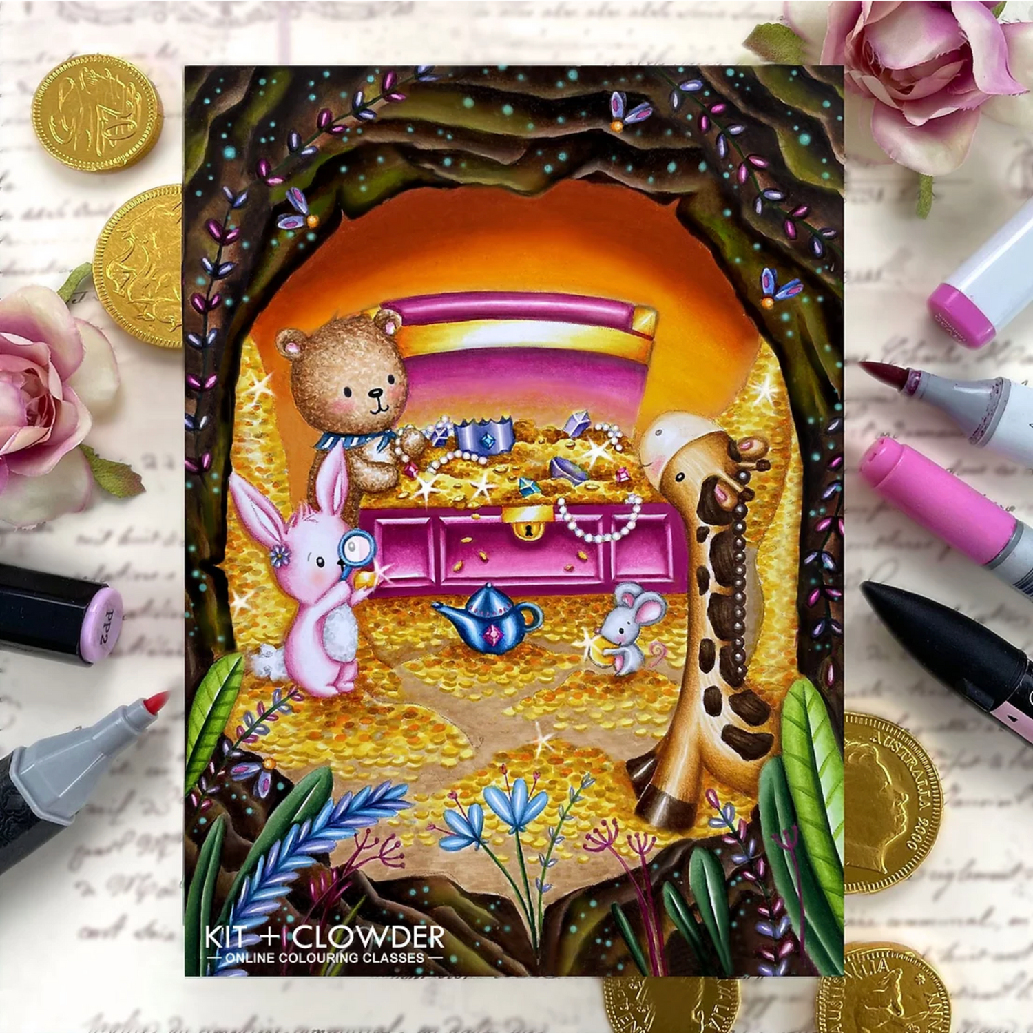 Kit & Clowder: 'Treasure Cave' Colouring Page