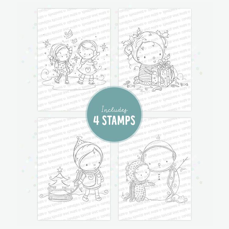 This listing is for 4 digital stamps (PNG Format) from Rachelle Anne Miller. Perfect for handmade cards, papercrafts, kid's colouring pages, and more, these whimsical hand-drawn digital stamps are the ideal cute and unique touch for your creative project! This set includes little kids, snowmen, skating, Christmas trees, presents, and all things Christmas holidays!