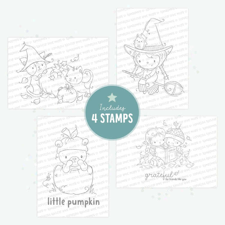 This listing is for 4 digital stamps (PNG Format) from Rachelle Anne Miller. Perfect for handmade cards, papercrafts, kid's colouring pages, and more, these whimsical hand-drawn digital stamps are the ideal cute and unique touch for your creative project! This set includes pumpkins, a witch, a cute bear, and some playful cats!