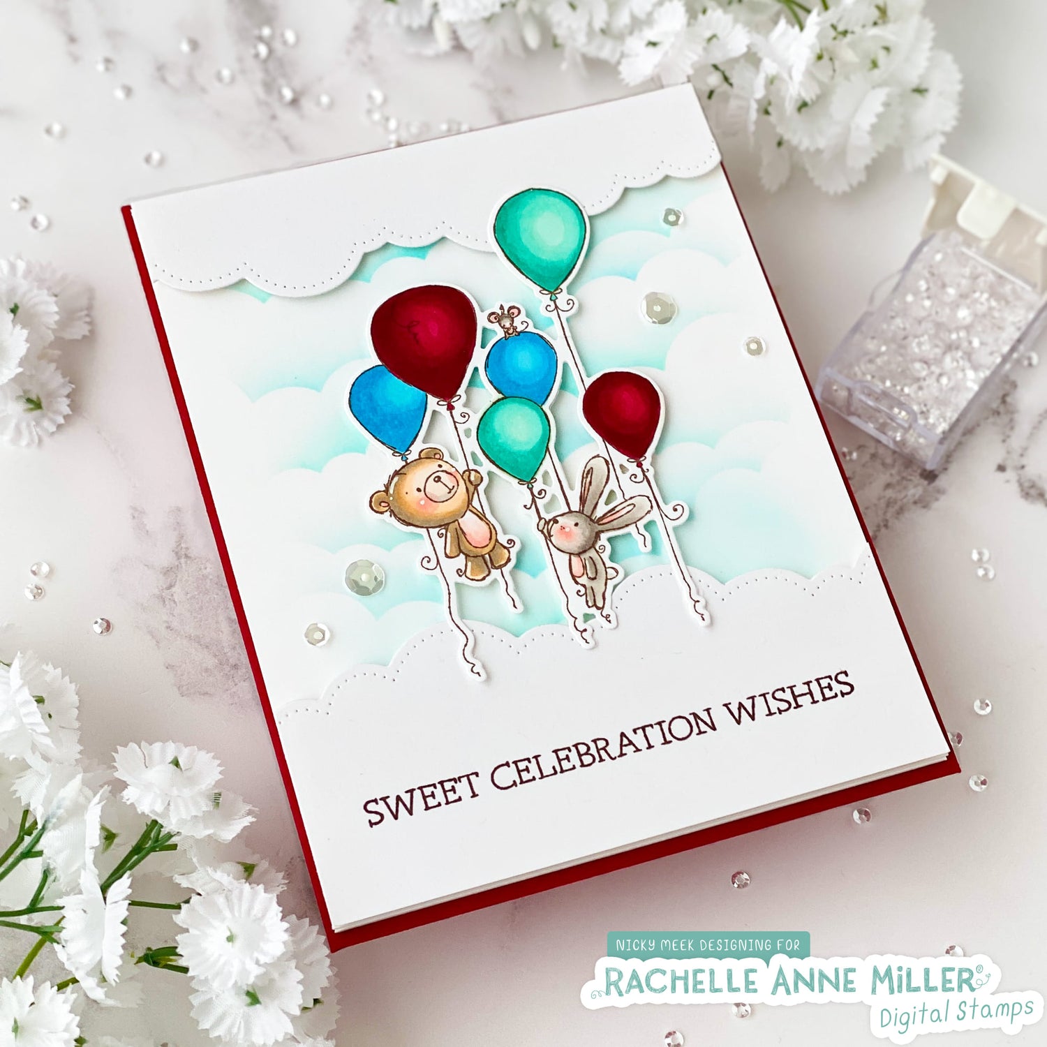 This listing is for a digital stamp (PNG Format) from Rachelle Anne Miller. Perfect for handmade cards, papercrafts, kid's colouring pages, and more, these whimsical hand-drawn digital stamps are the ideal cute and unique touch for your creative project! This stamp includes balloons, a teddy bear, a bunny rabbit, a mouse, and a birthday theme.