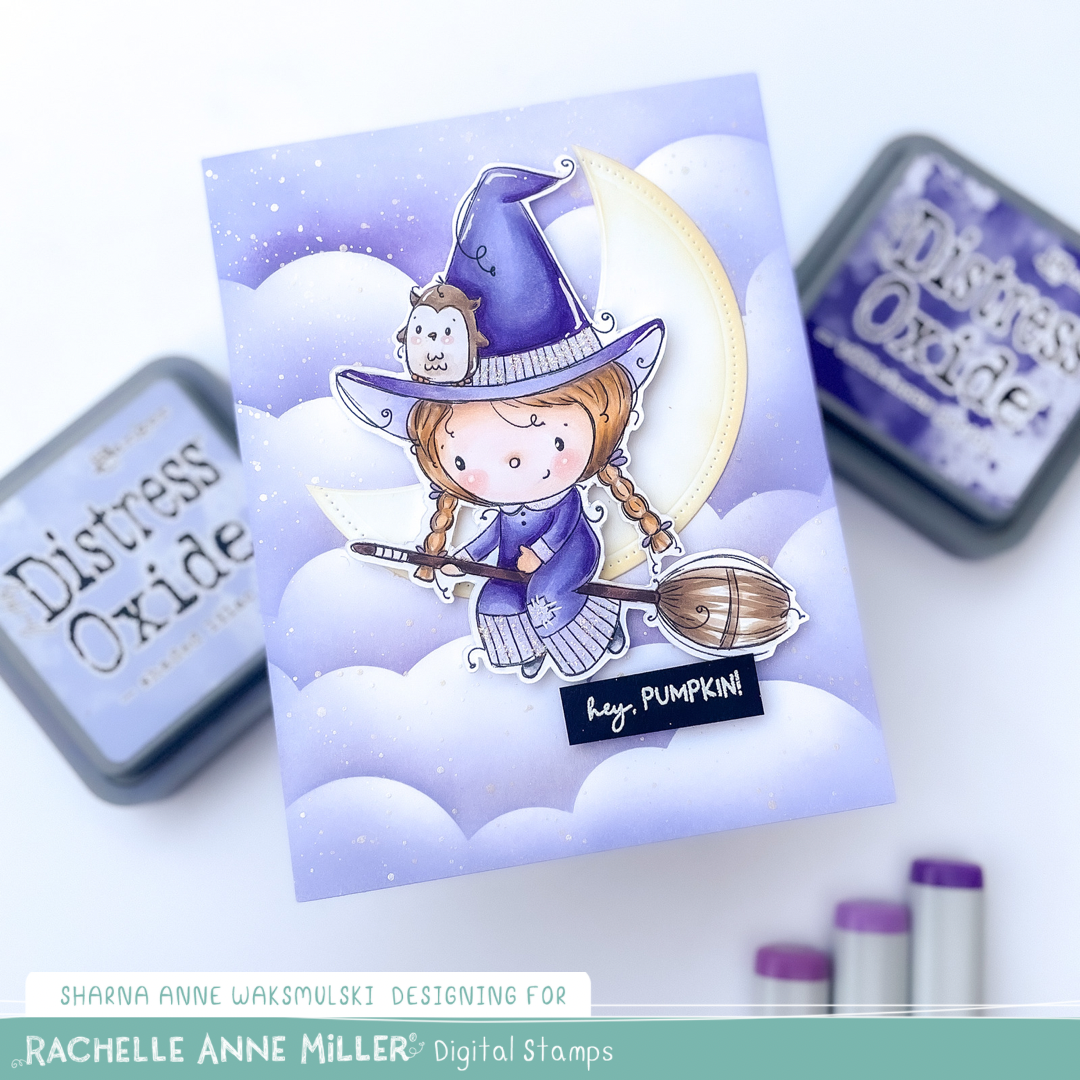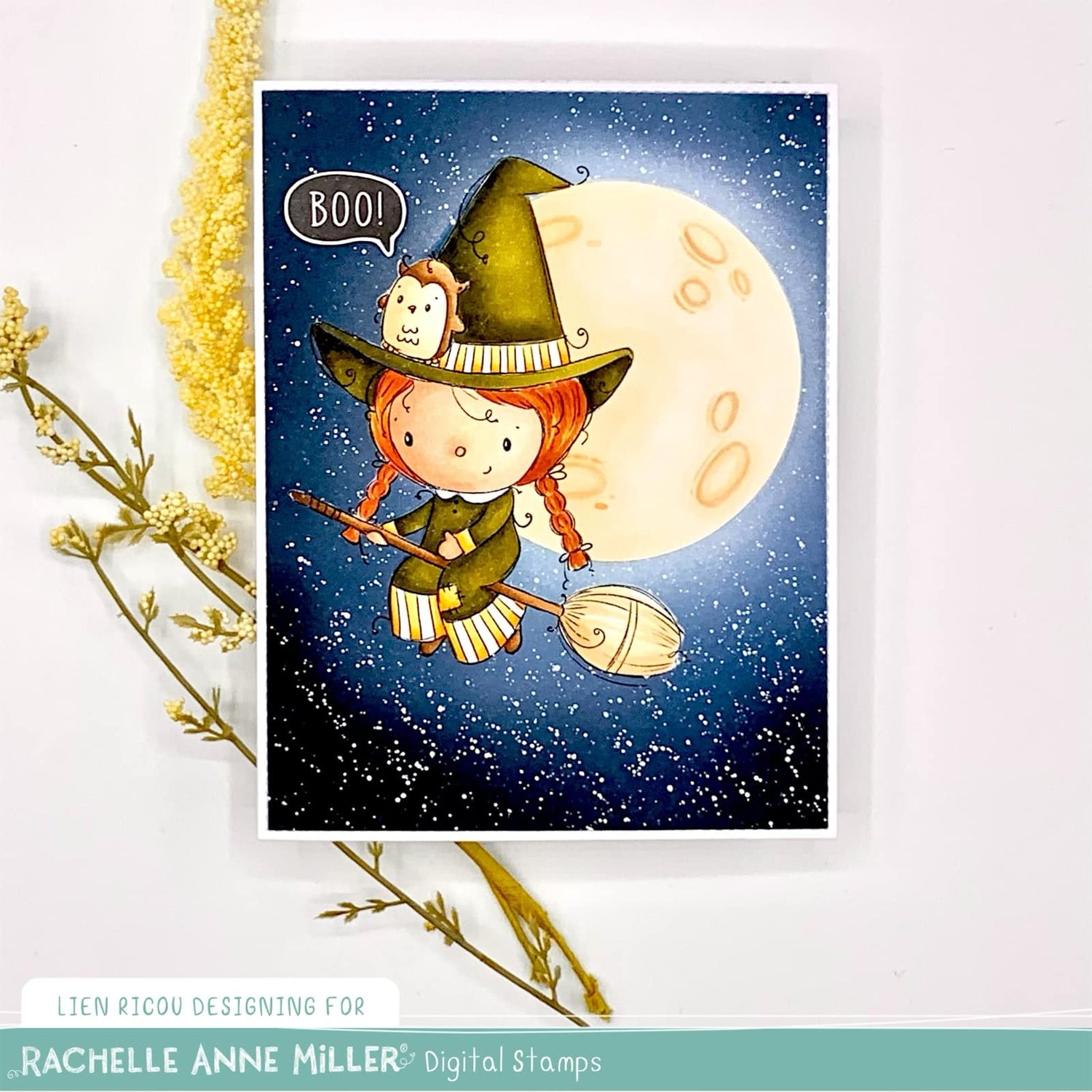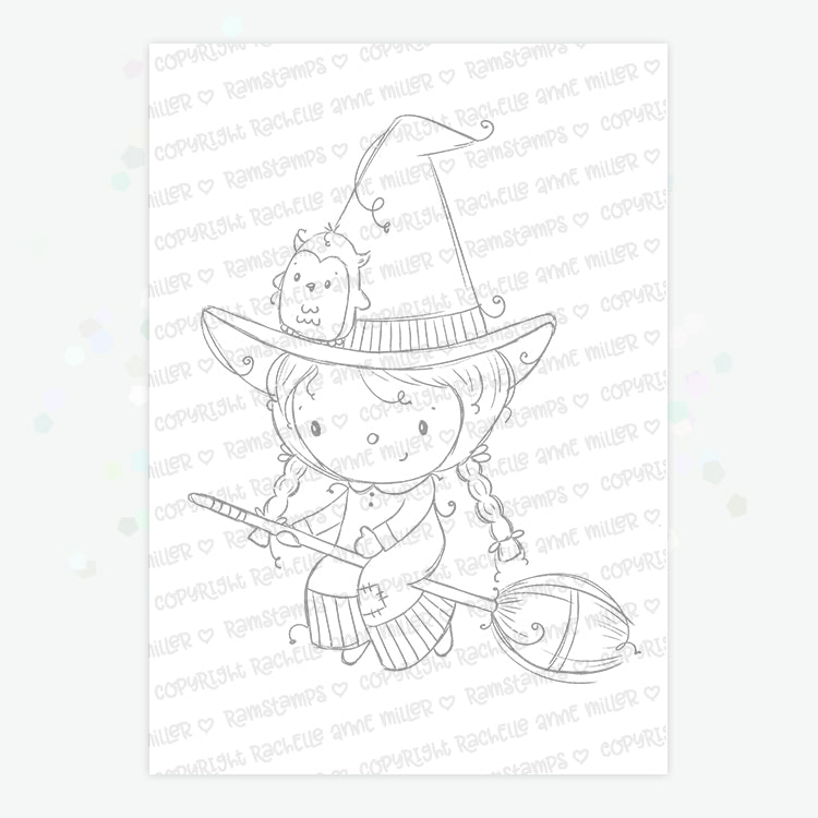 This listing is for a digital stamp (PNG Format) from Rachelle Anne Miller. Perfect for handmade cards, papercrafts, kid's colouring pages, and more, these whimsical hand-drawn digital stamps are the ideal cute and unique touch for your creative project! This stamp includes a cute witch riding on her broom with her pet owl.