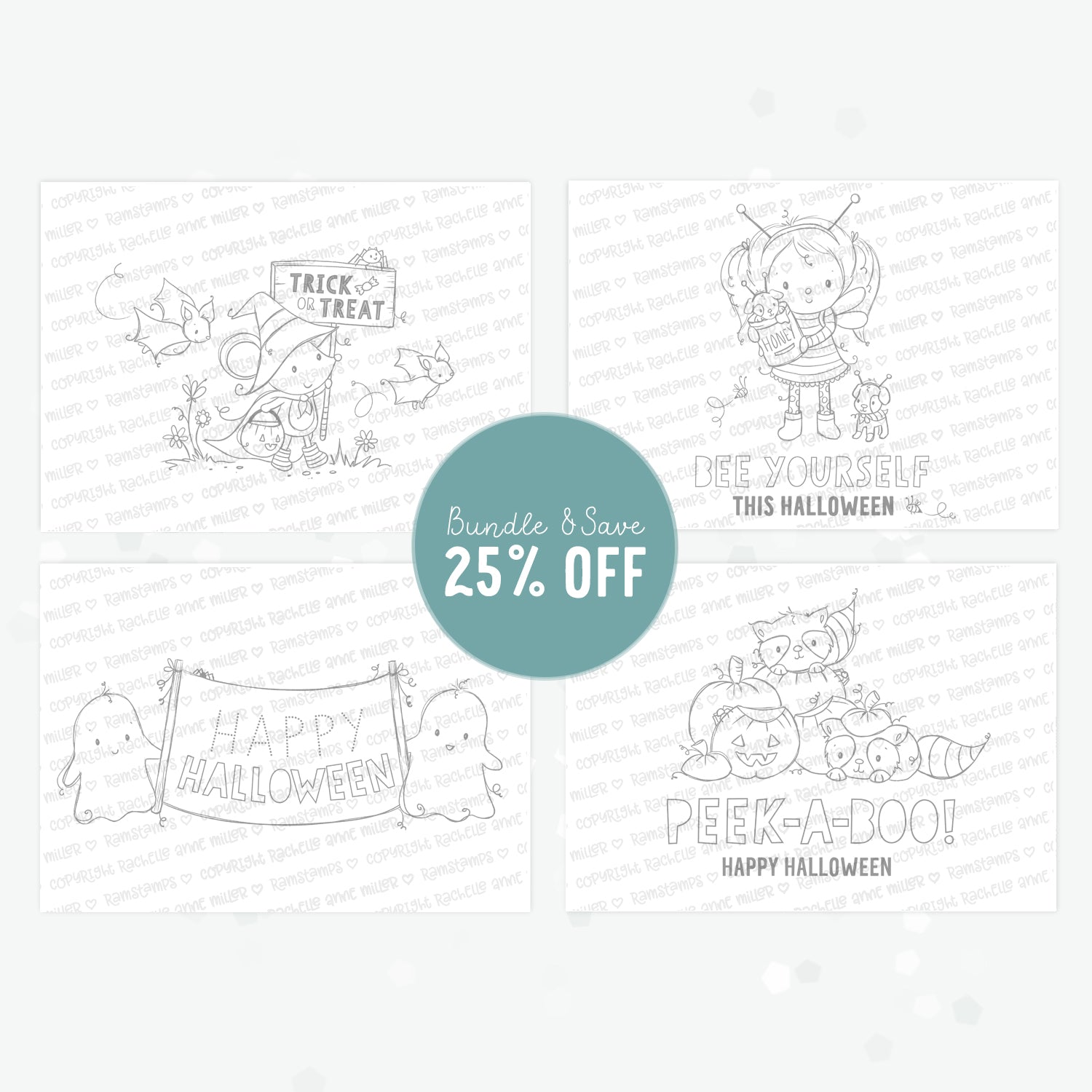This listing is for 4 digital stamps (PNG Format) from Rachelle Anne Miller. Perfect for handmade cards, papercrafts, kid's colouring pages, and more, these whimsical hand-drawn digital stamps are the ideal cute and unique touch for your creative project! This set includes bats, ghosts, raccoons, pumpkins, and lots of fun dress-ups.